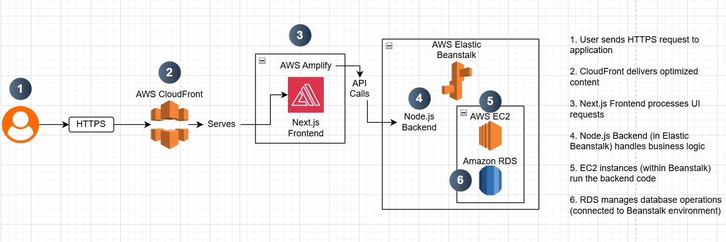- AWS Amplify: Hosting service for the frontend application that provides continuous deployment capabilities.